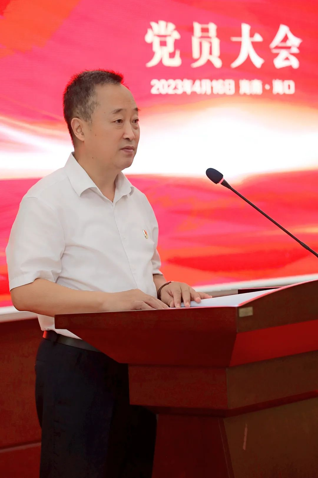 海口市高新区两新组织党委副书记傅爱萍宣读了《中共海口国家高新区非公有制经济组织和社会组织委员会关于同意成立中国共产党海南918搏天堂药业集团股份有限公司委员会的批复》。